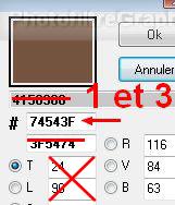 2.Mettez en couleur d'avant-plan le marron foncé R=116 V=84 B=63