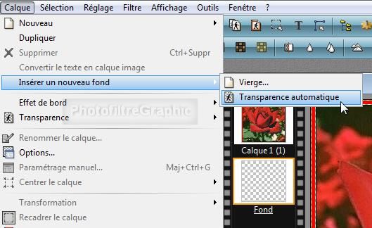 8. Menu Calque > Insérer un nouveau fond > Transparence automatique