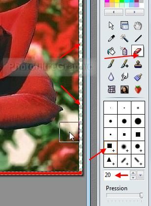 Avec la gomme par exemple carrée+, réglée à 20, Pression Maximum, effacez tout le cadre sauf
