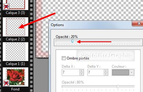 23. Double Clic sur la vignette du calque 2. Opacité du haut sur 20%