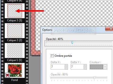 25. Double Clic sur la vignette du calque 3. Opacité du haut sur 40%