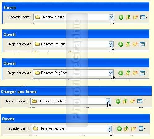 57.Pour utiliser les Masks,les Patterns,les PngData,les Sélections et les Textures qui sont dans les dossiers Réserve ,vous avez 2 soluitions