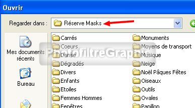 Dans XP 23.Cliquez sur Démarrer puis sur Mes Documents 24.Double-clic sur Fournitures pour PhotoFiltre 25.Cliquez sur Créer un nouveau dossier 26.A la place de Nouveau dossier, écrivez Réserve Masks