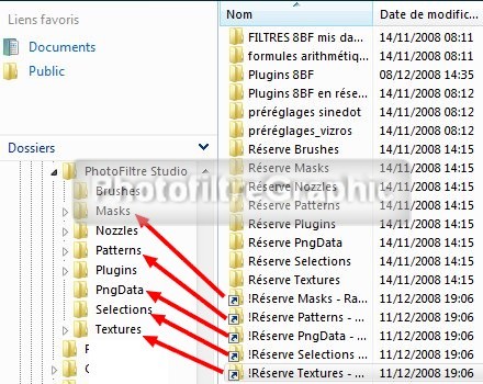 27.Faites la même chose pour tous les sous-dossiers Réserve qui sont dans Fournitures pour PhotoFiltre |