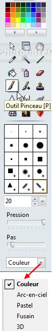 9.Comme pour les outils ligne et aérographe, on peut tracer des horizontales et des verticales en tenant la touche majuscule enfoncée.