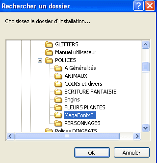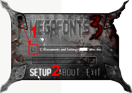 9.Pour modifier le chemin de l'installation,cliquez en 1 puis sur les croix jusqu'au dossier MegaFonts