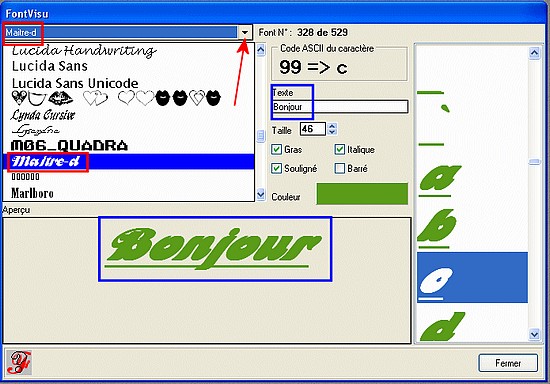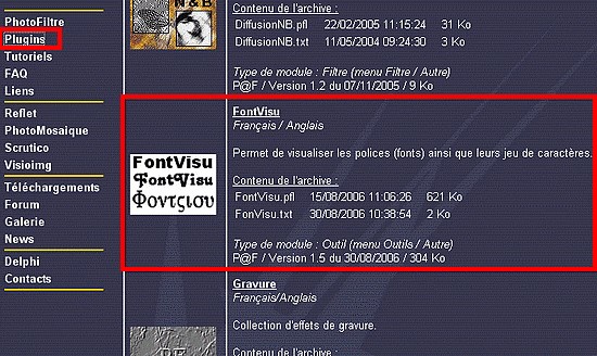 40.Le plugin FontVisu fonctionne dans Photofiltre et permet de visualiser toutes les polices qui sont