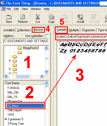23a.Fenêtre 1:Sélectionnez l'onglet Browse et cherchez votre dossier MegaFonts