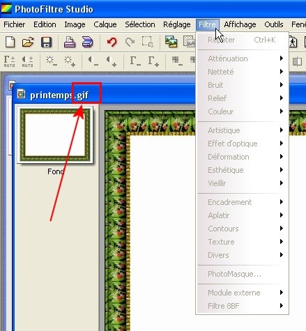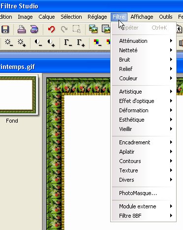 5.Revenez dans le Menu Filtre ...il n'est plus en grisé...donc il est actif