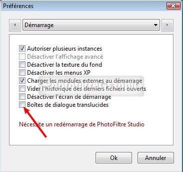 Attention Avec vista et la version de Studio x (10),il faudra désactiver l'affichage des Boîtes de dialogue translucides sinon,elles disparaîtront au moment de la capture Menu Outils > Préférences > Démarrage