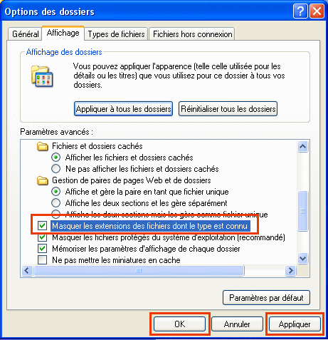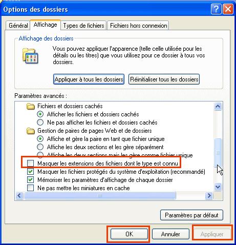 Comment afficher ou ne pas afficher les extensions