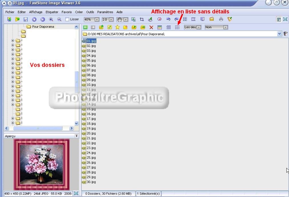 31. Si votre dossier est bien prêt avec vos images dedans,cliquez sur le bouton B Ajouter un dossier, sélectionnez votre dossier OK et toutes vos images se placeront en haut