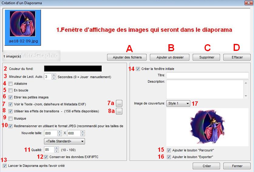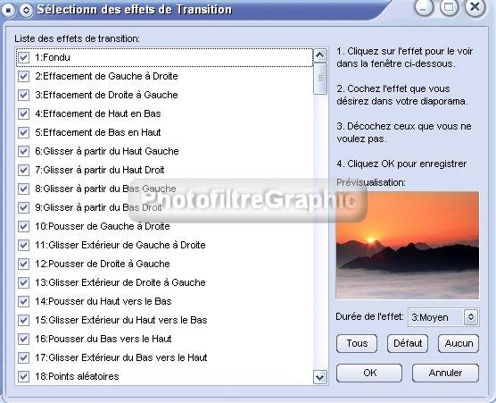 39.Ligne 8: Utiliser les Effets de transition. En le cochant les effets sélectionnés s'appliqueront entre chaque image