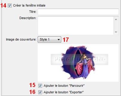 60.Si 15 Ajouter le bouton "Parcourir" et 16 Ajouter le Bouton "Exporter" ne sont pas cochés, ils verront la vignette de la 1ière image et seulement Play