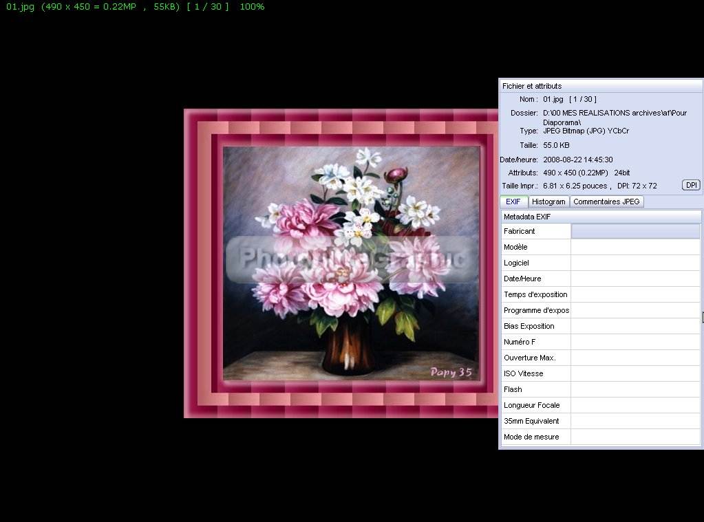 55.En cliquant sur Browse, pas de Diaporama mais les images sont affichées à leur taille réelle et on peut les voir une à une avec la roulette de la souris