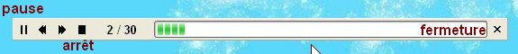 72.En cours de Diaporama,si vous mettez votre curseur vers le bas de l'écran,vous aurez cette bande de commandes qui permet plusieurs actions:pause,arrêt, reculer, avancer ou fermeture ainsi que le décompte des vues