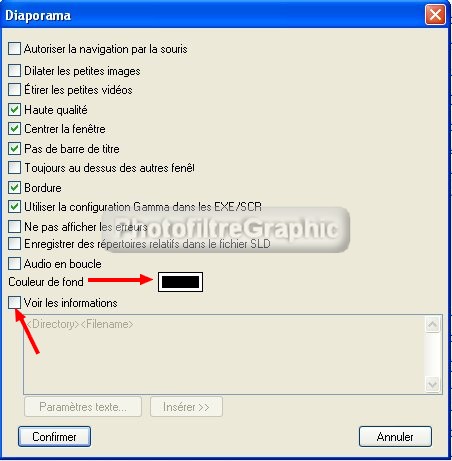49.Décochez Voir les informations pour qu'il n'y ait rien d'écrit sur le Diaporama