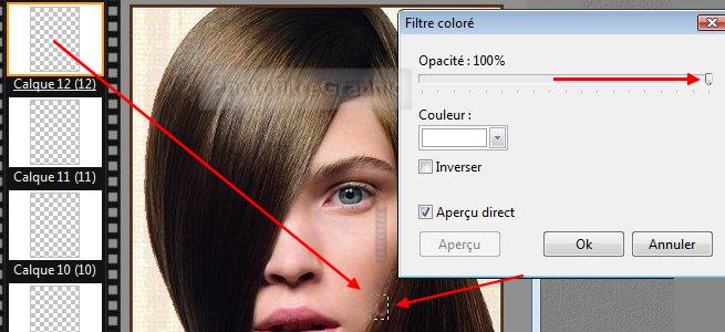 21.Pour colorer légèrement les larmes suivantes. Menu Filtre > Couleur > Filtre coloré. Opacité = 100% Blanc
