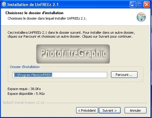 8.L'installation va se faire dans Programmes ou Program Files. Cliquez sur Suivant