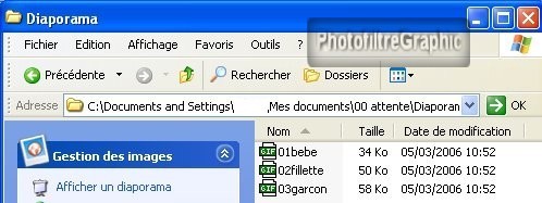 4.Créez un autre dossier diaporama Gif dans Mes documents pour les réenregistrer au format Gif