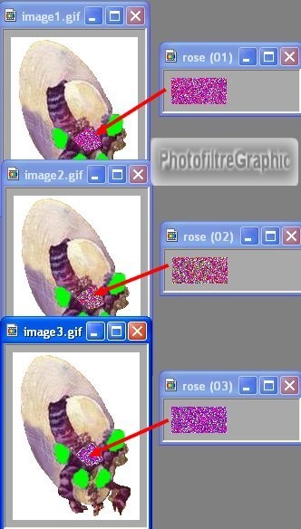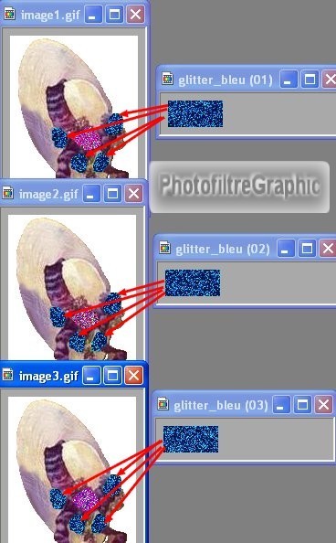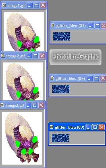 13.Dupliquez 2 fois cette image et ouvrez le glitter rose avec la fonction Importation