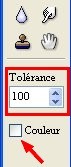 18.Tolérance = 100 et Couleur cochée (si cela sélectionne d'autres parties de votre image,il faudra laisser décoché et faire chaque partie verte une par une)