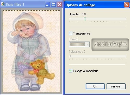 4.Clic droit dessus > Options de collage > Opacité = 35%