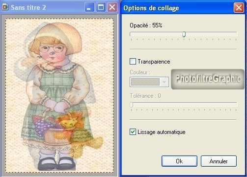 7.Clic droit dessus > Options de collage > Opacité = 55%