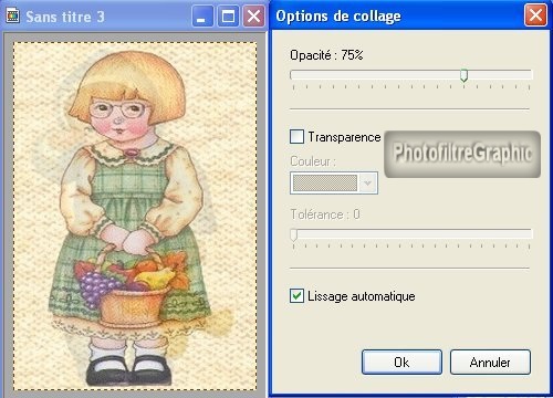 10.Clic droit dessus > Options de collage > Opacité = 75%