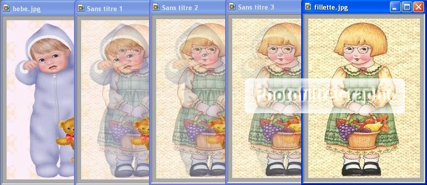 17.Si vous voulez que les 2 images du départ (fillette et bébé) restent affichées un peu plus longtemps,il faudra glisser plusieurs images 1 et 5