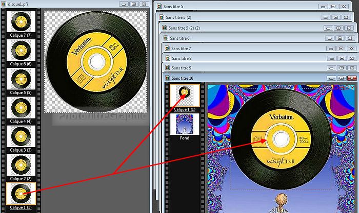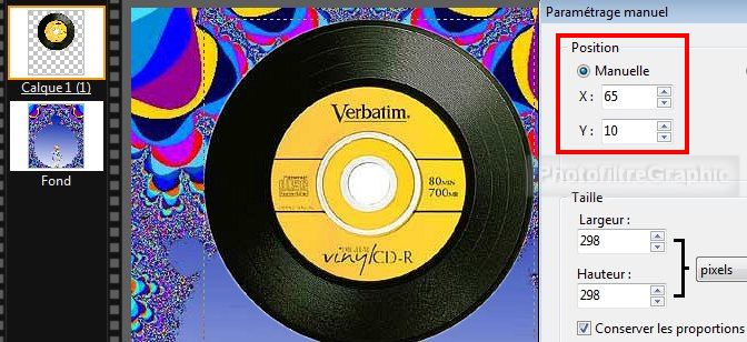 35. Vous allez copier-coller chaque disque sur une image et avec le Paramétrage manuel du menu calque, les mettre à la même place