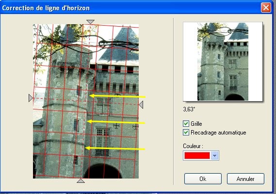 Lorsque la ligne d'horizon ou les murs d'un bâtiment penchent ,il y a lieu de les redresser