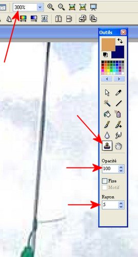 1.Si vous ne savez pas vous servir du tampon de clonage,voir version gratuite 653 ou version studio et 7